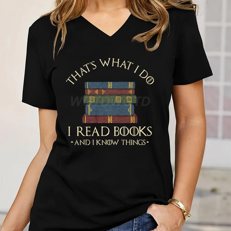 V-Ausschnitt Lesebuchliebhaber Geschenk T-Shirt Oberteile Das ist, was ich tue, ich lese Bücher Grafik-T-Shirts Damen Und ich weiß Dinge Freizeit-Oberteile