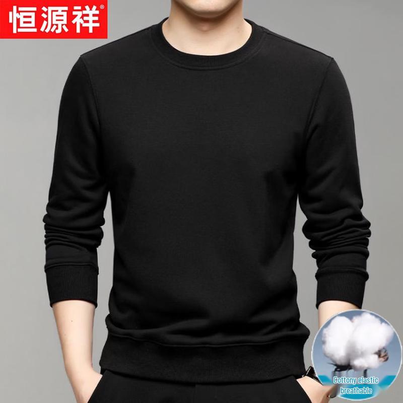 Hengyuanxiang Herren Einfarbiges Gekämmtes Baumwoll Langarm Freizeit Oberteil