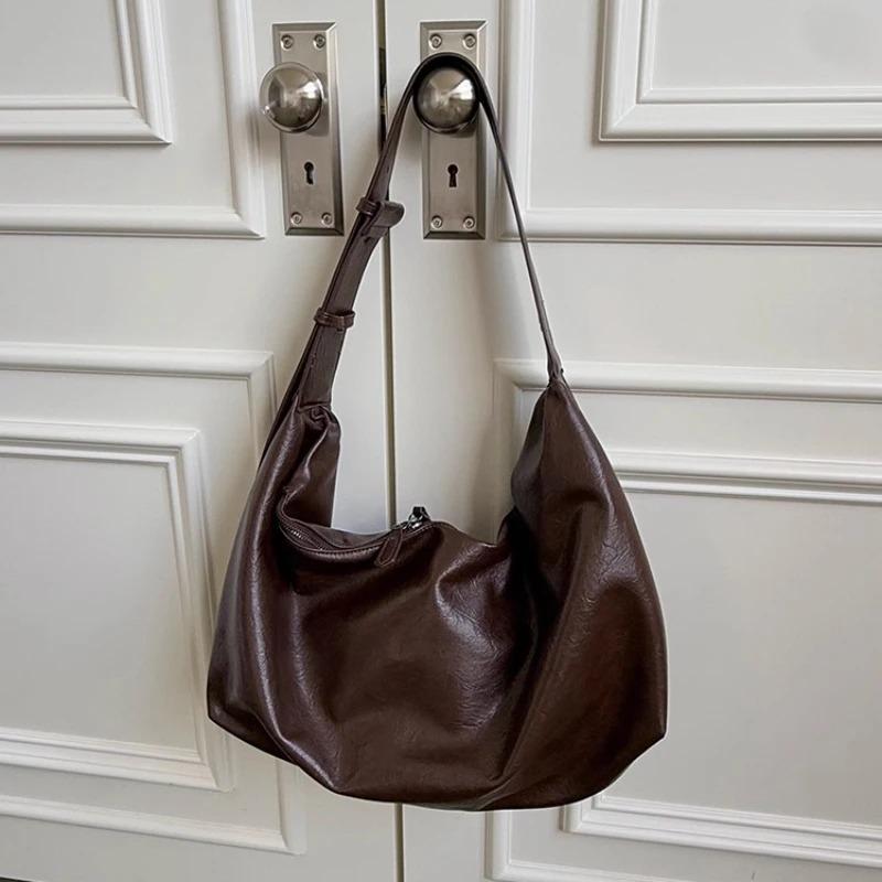 Weiches PU-Leder Damen Hobo Schultertasche Große Kapazität Damen Retro Lässige Umhängetaschen Einfarbige Damen Tragetaschen
