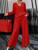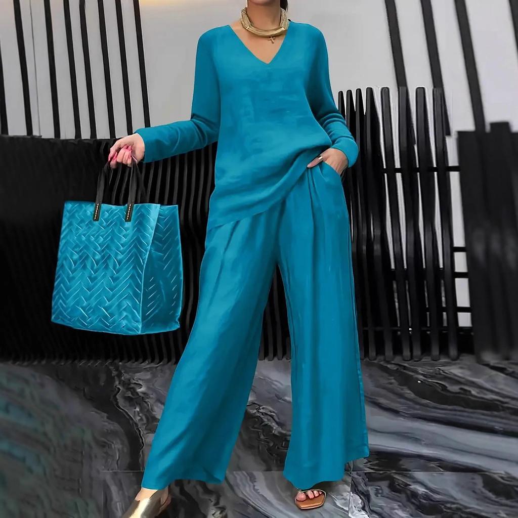 Verleihen Sie Ihrer lässigen Eleganz mit diesem atemberaubenden königsblauen Zweiteiler einen Hauch von Luxus. Das langärmelige Oberteil mit V-Ausschnitt passt perfekt zu passenden Hosen mit weitem Bein und schafft einen harmonischen und stilvollen Look, der sowohl bequem als auch schick ist.. Dieses Set ist mit einer lockeren, fließenden Silhouette gestaltet und bietet mühelose Bewegungsfreiheit sowie eine moderne, entspannte Passform.. Der satte Blauton verleiht jeder Garderobe einen Farbakzent und macht sie ideal für den täglichen Gebrauch, Freizeitaktivitäten oder entspannte Treffen.. Hergestellt aus weichem, atmungsaktivem Stoff für Komfort den ganzen Tag über.