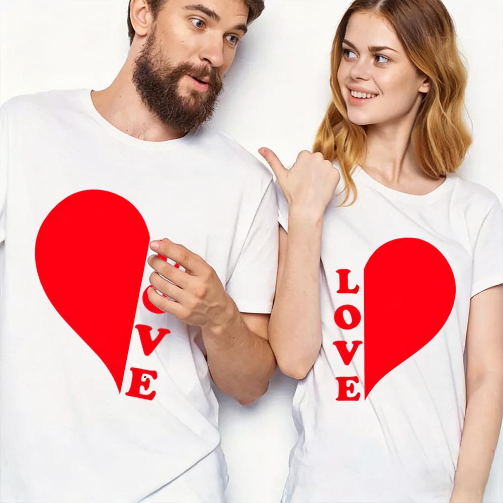 Red Heart Print Couples Graphics Matching Tshirt LOVE Fashion Vintage Women Men Casual Valentines Day Gifts Lovers Tee Shirt