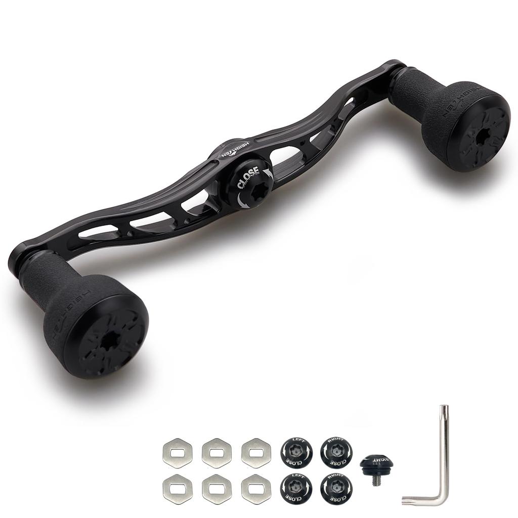[Size] 24mm diameter TPE knob, handle axis distance 105mm/120mm. [105mm total weight] 38g (including center nut) [120mm total weight] 43.5g (including center nut) [Material] Knob - TPE & aircraft aluminum, Handle - aircraft aluminum. [105mm included] 2 x 4x7mm center nuts, 2 x 5x8mm center nuts, 1 x DAIWA STEEZ center nut, 1 x conversion sleeve, 1 x wrench. [120mm included] 2 x 4x7mm center nuts, 2 x 5x8mm center nuts, 1 x DAIWA STEEZ center nut, 6 x hexagonal washers (mounting part 4x7mm, 5x8mm), 1 x wrench. [Compatible models] Applicable to DAIWA, SHIMANO, and ABU GARCIA baitcasting reels with mounting part 4x7mm and 5x8mm. 【Product Features】: High-performance materials, CNC precision machining technology, strong and lightweight, seawater resistant, corrosion resistant, rust-proof, durable, stable rotation, anti-slip design, cap loosening prevention design, improved control performance, ergonomic design for reduced fatigue.