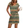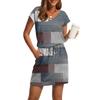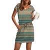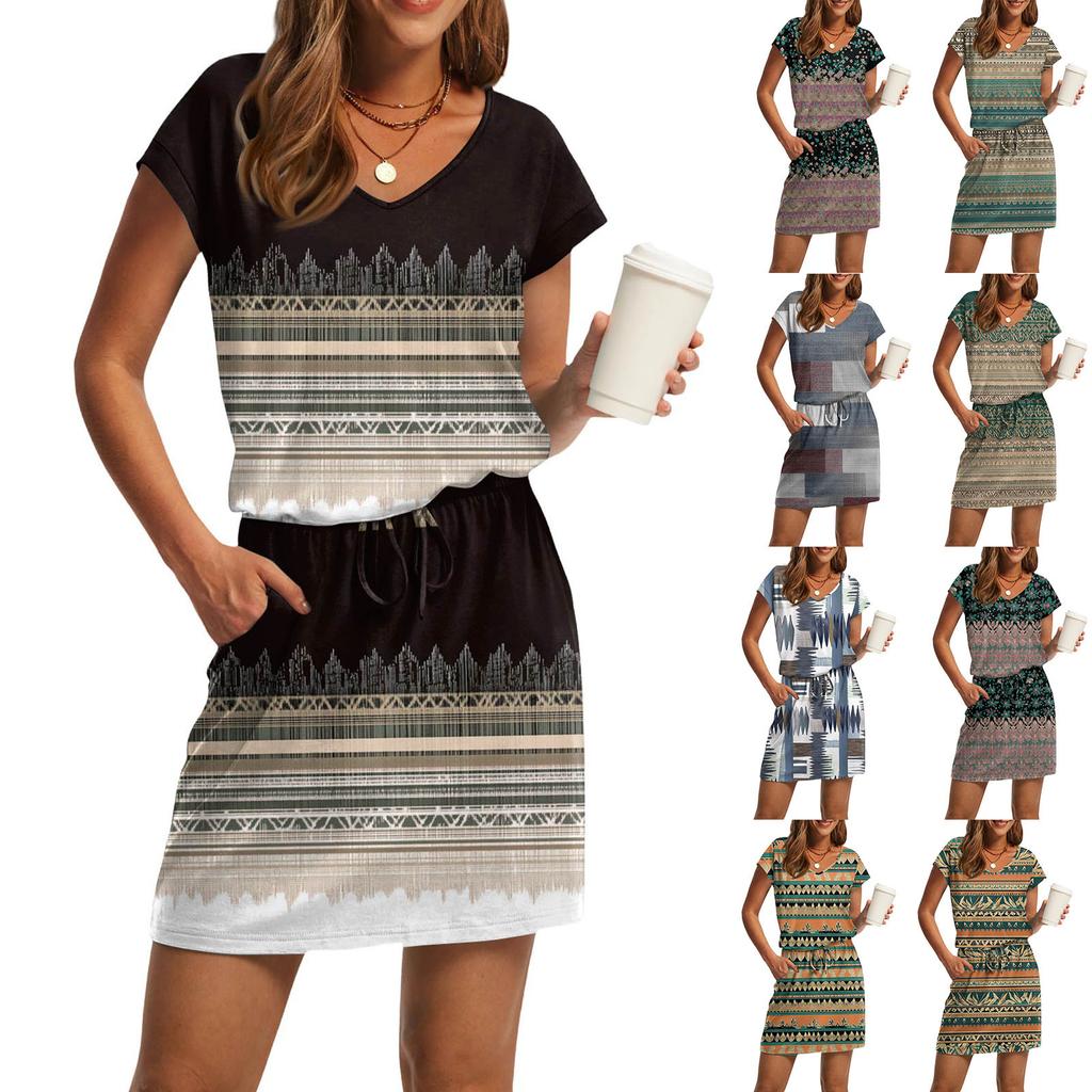 Damenmode V-Ausschnitt Kurzarm Kordelzug mit Tasche Bedruckte Freizeitkleider