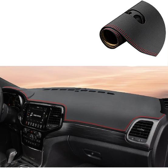 Rifoda Armaturenbrettabdeckung Matte Passend für Jeep Grand Cherokee 2011-2021 Leder Material Rutschfester Armaturenbrettschutz Sonnenschutz Blendfreies Abdeckpolster Rote Nähte
