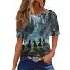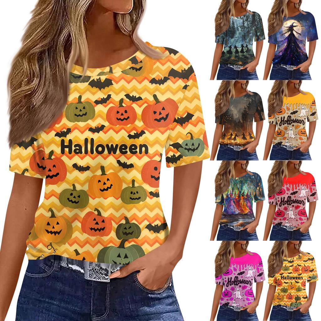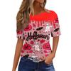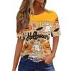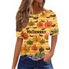 Modisches Lässiges Damen-Pullover-Oberteil mit Kurzarm und Halloween-Print, Rundhals