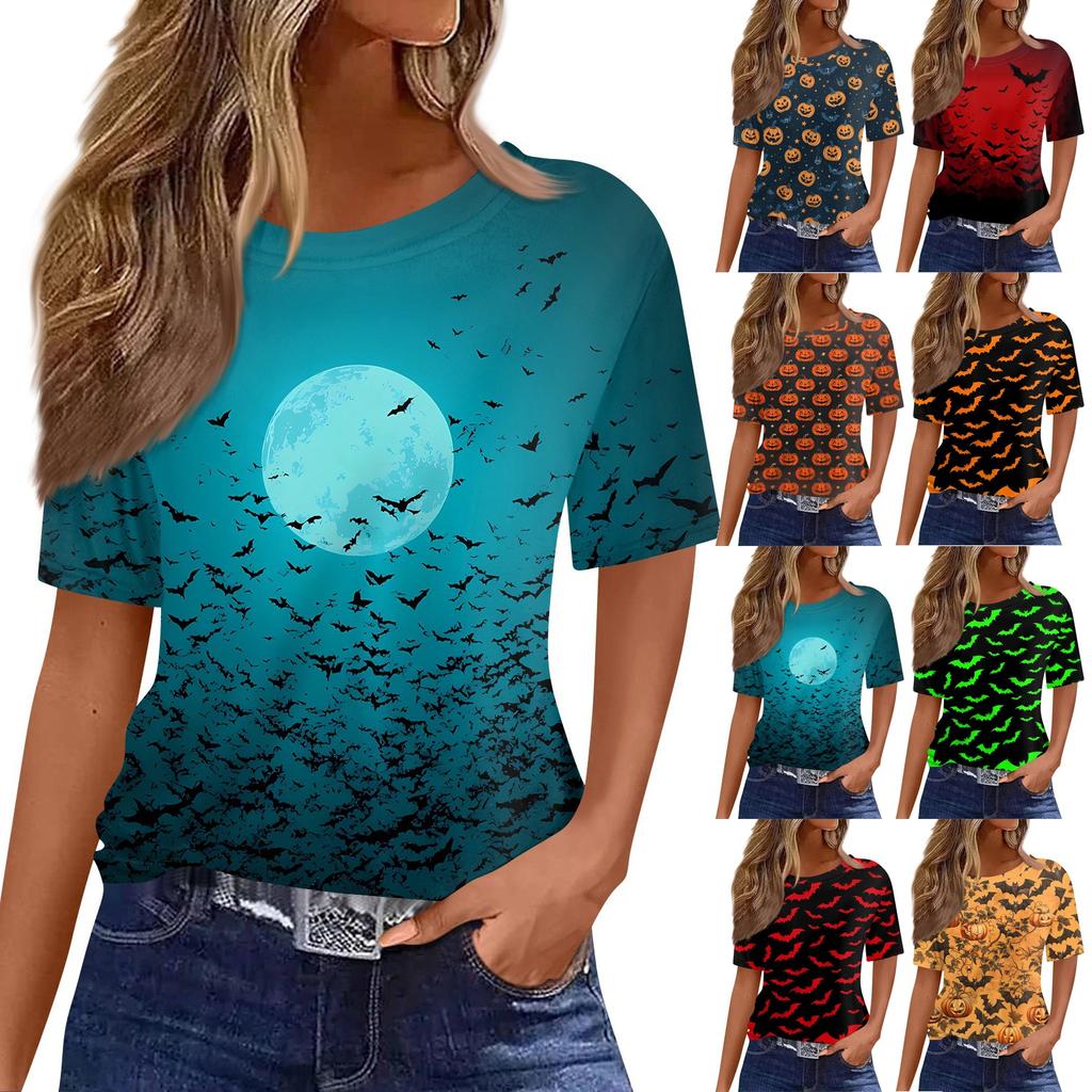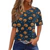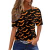 Modisches Lässiges Damen-Pullover-Oberteil mit Kurzarm und Halloween-Print, Rundhals