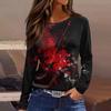 Damenmode Saumschlitz Lässig Halloween-Print Rundhals Langarm Oberteil