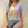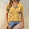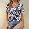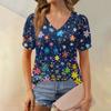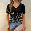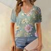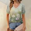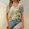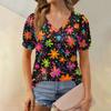 Damenmode Blumendruck Top Puff Kurzarm V-Ausschnitt T-Shirt Lose Casual T-Shirt