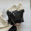The bag features a sophisticated bucket shape enhanced by a luxurious chain shoulder strap, allowing you to wear it as a shoulder bag or crossbody for hands-free convenience. The black color adds a timeless appeal, while the quilted pattern injects a touch of contemporary flair. With an internal zip pocket for secure storage, you can keep your valuables organized and easily accessible. Though it boasts a soft structure, it maintains a stylish silhouette that complements any attire.