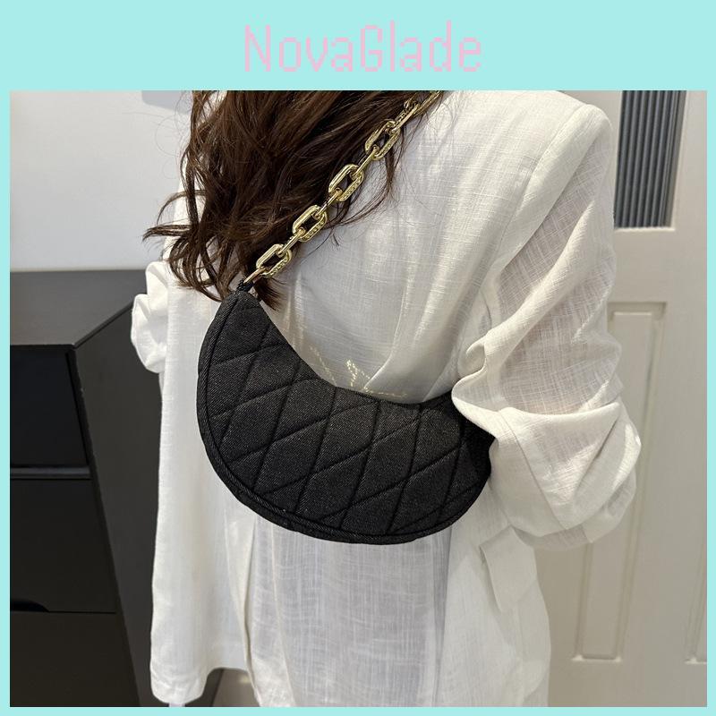 Stylish Womens Summer Chain Crossbody Bag In Black Deep Blue And Light Blue Colors