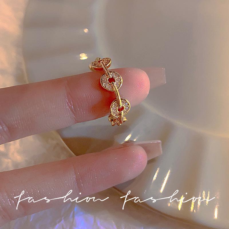 Offener Band-Münzring im japanisch-koreanischen Stil für Damen: Nischen Design, Modischer Persönlichkeitsindex Ring