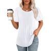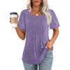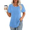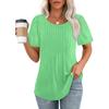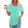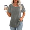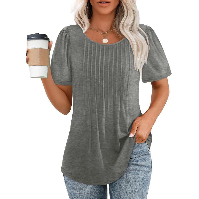 Lockeres neues plissiertes Rundhals-Kurzarmhemd Damen Oberteil, Gestreift Uni Farbe Damenbekleidung