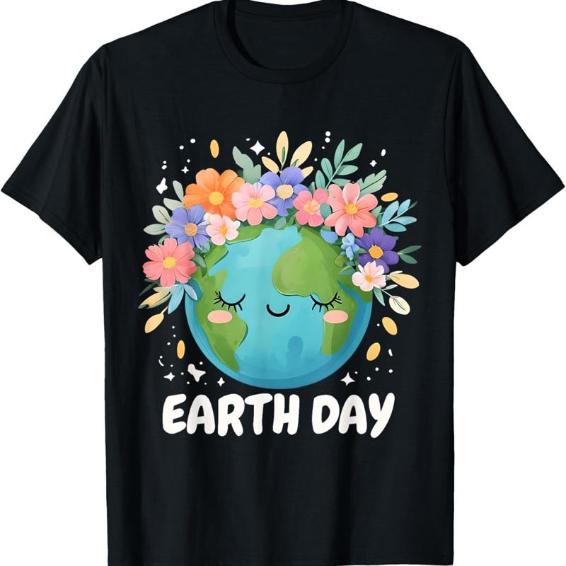 Earth Day T Shirt Cute Floral Planet 2026 Summer New Round Neck Earth Print Tee Women Harajuku Sleeve Casual Aesthetic Clothes