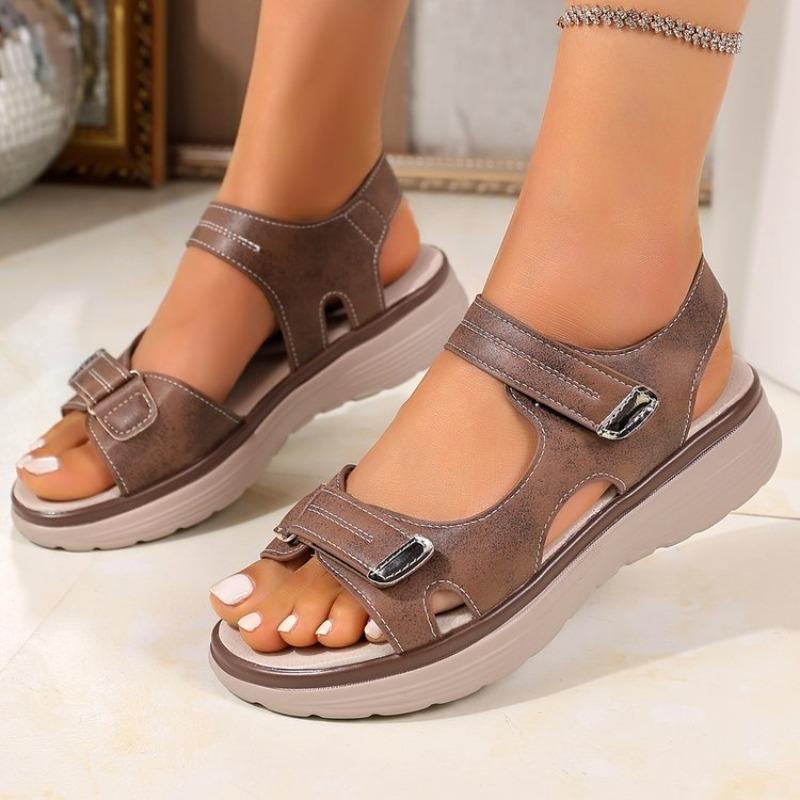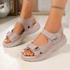 2026 New Brand Women's Sandals Summer Women's Leather Lightweight Casual Wedge Heel Thick Soled Gray Comfortable Beach Sandals