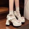 2026 Women High Heels Shoes Woman Chunky Sandals Summer PU Leather Shoes Retro Bow Party Platform Pumps