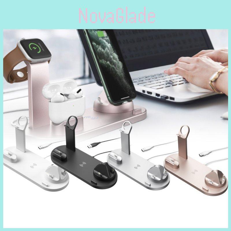 6 in 1 Wireless Charger! This versatile 15W charging station is designed to provide efficient power for your vital devices - smartphones, headphones and smartwatches - all integrated in a compact and stylish unit. Available in four colors: black, white, silver and rose gold, this charger seamlessly fits into any decor, making it the perfect addition to your home or office.