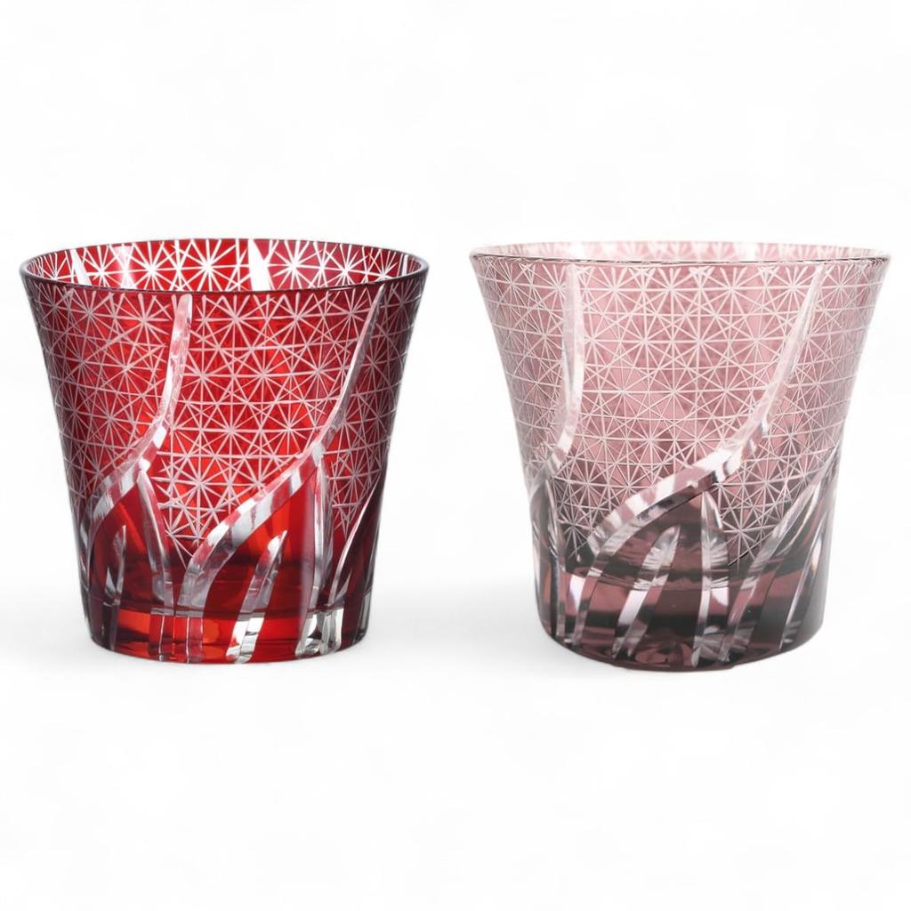 Mizukage Kiriko Paar Glasbecher 240cc Zufällige Gravur Kleines Muster Rot Lila mit Graviertem Boden Bishou Aktuelles Modell J-kitchens 94xH85mm &