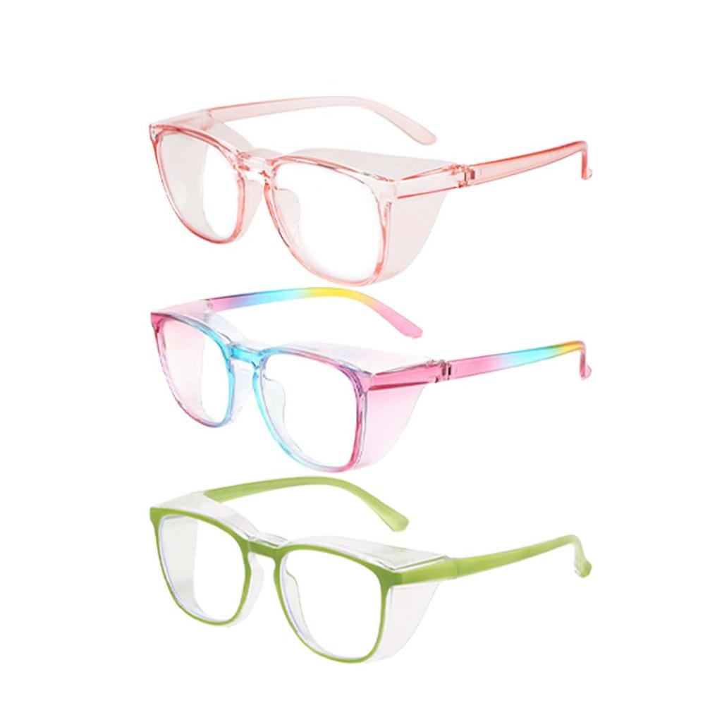 3PCS Anti- Fog Safety Eyeglasses Square Blue Lightweight Blocking Eyeglasses with Side Shields for School Daily Life