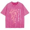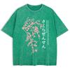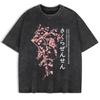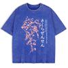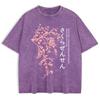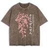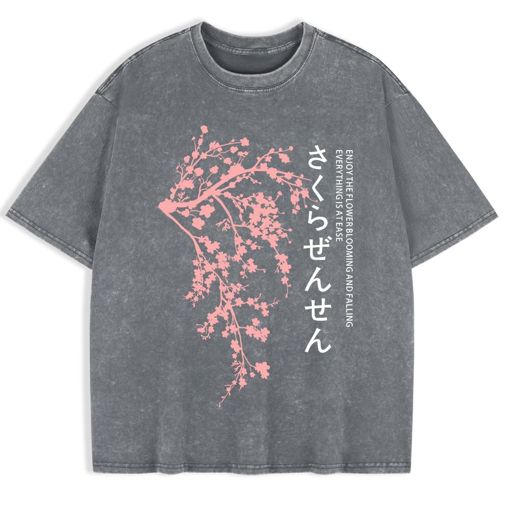 Japan Kirschblüten Aufdruck Gewaschene T-Shirts Herren Baumwolle Oversize T-Shirt Lässige O-Ausschnitt Kurzarm Oberteile Kleidung