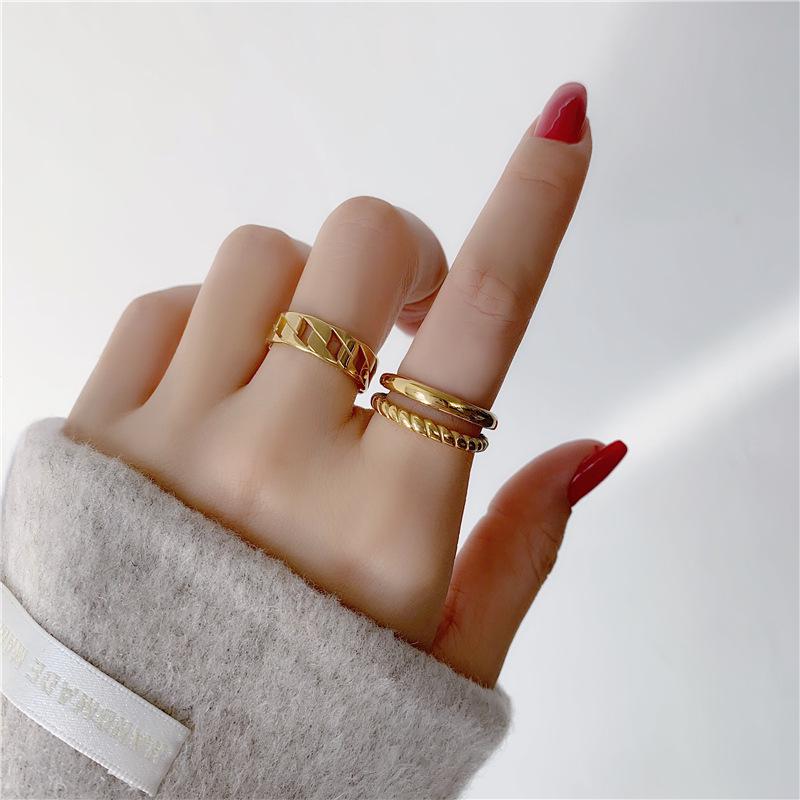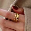 Personalized 18K Gold-Plated Titanium Double Layer Chain Ring - Trendy Retro Fashion for Women