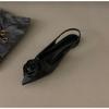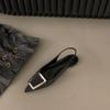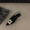Schwarze Damen Leder PU Freizeit Sandalen Mädchen Mode Strass Slip-on Flats Absätze Damen Spitzzehen Elegant Slingback Sandalen