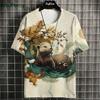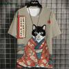 Japanisches Ukiyo-E T-Shirt Herren Tierdruck Grafik T-Shirts Vintage Herrenbekleidung Rundhals Kurzarm Tee Harajuku T-Shirt