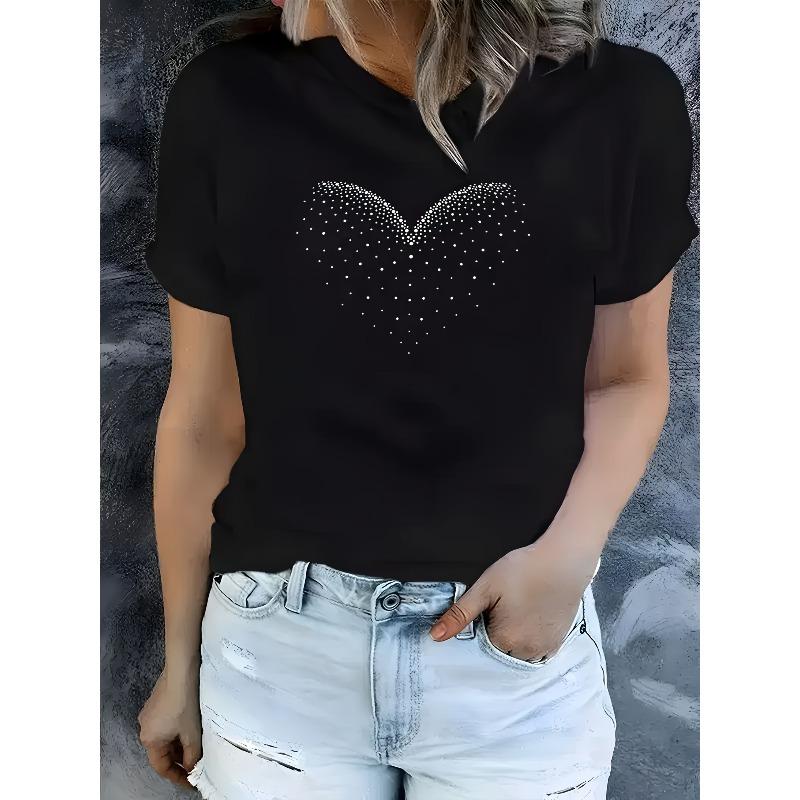 Women's Casual Short Sleeve Crew Neck T-Shirt - Opaque Summer & Spring Blouse/Waist/Thigh Graphic Print Top for Casual Attire