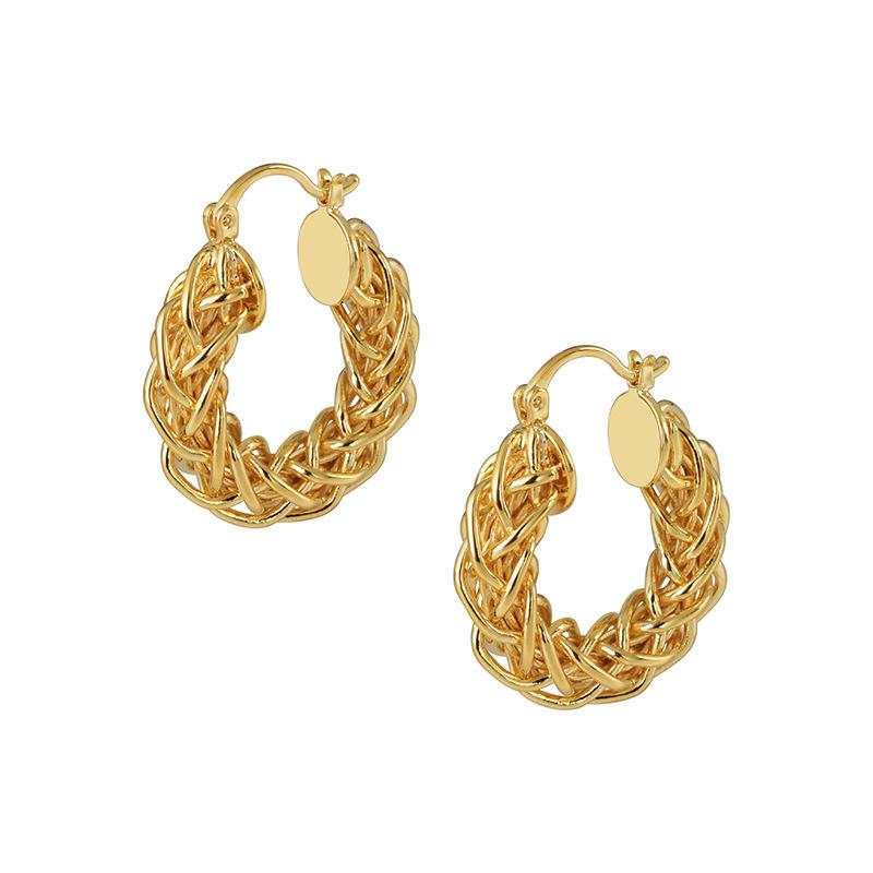 2026 European INS Style Chunky Woven Hoop Earrings - Vintage Braided O-Shape Gold Plated Ear Buckles for Women Niche Design Jewelry