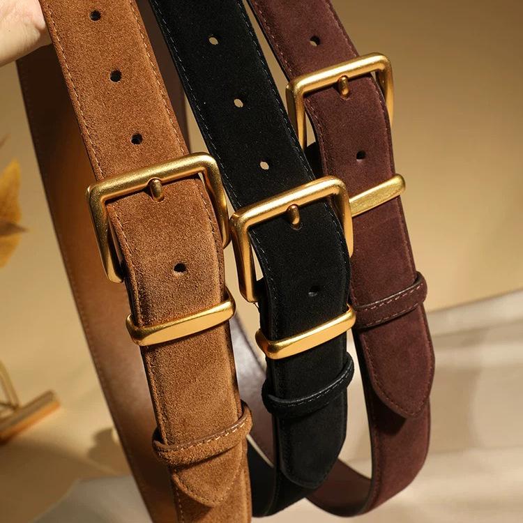 Women's Genuine Leather Cowhide Suede High-End Retro Wide Waist Cinch Belt for Jeans and Jackets