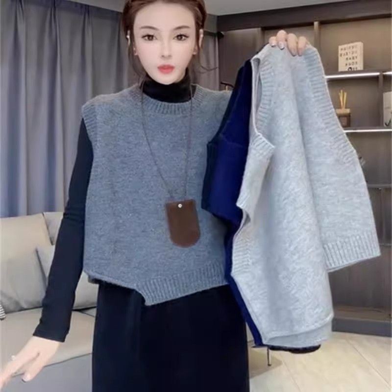 Europäisches Design unregelmäßiger kurzer Strickweste Damen Herbst Winter neue Mode lockerer vielseitiger Pullover