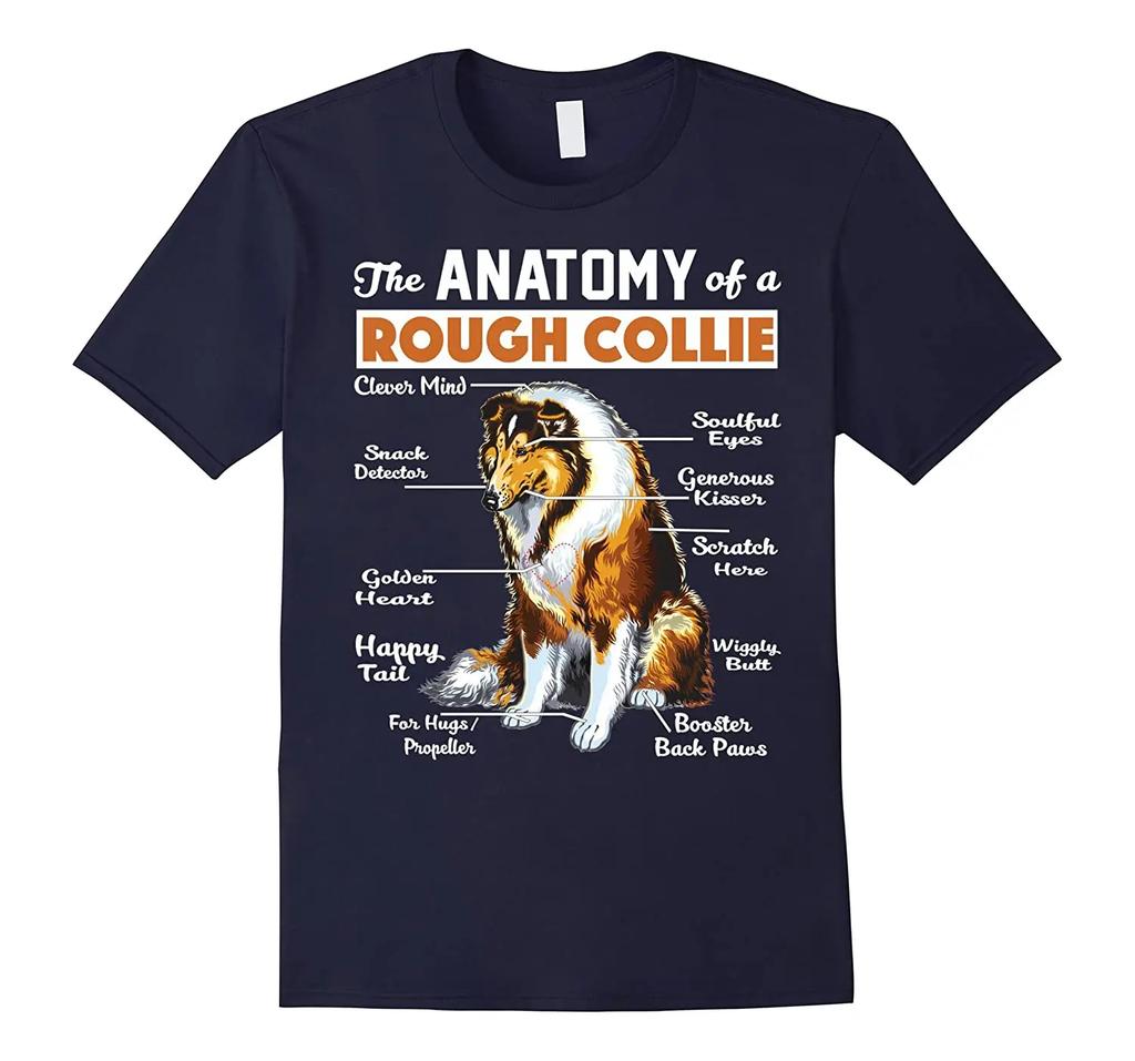 Rough Collie Anatomie Lustiges Hunde-Liebhaber Geschenk T-Shirt 100% Baumwolle Rundhals Kurzarm Sommer Lässig Herren T-Shirt Streetwear