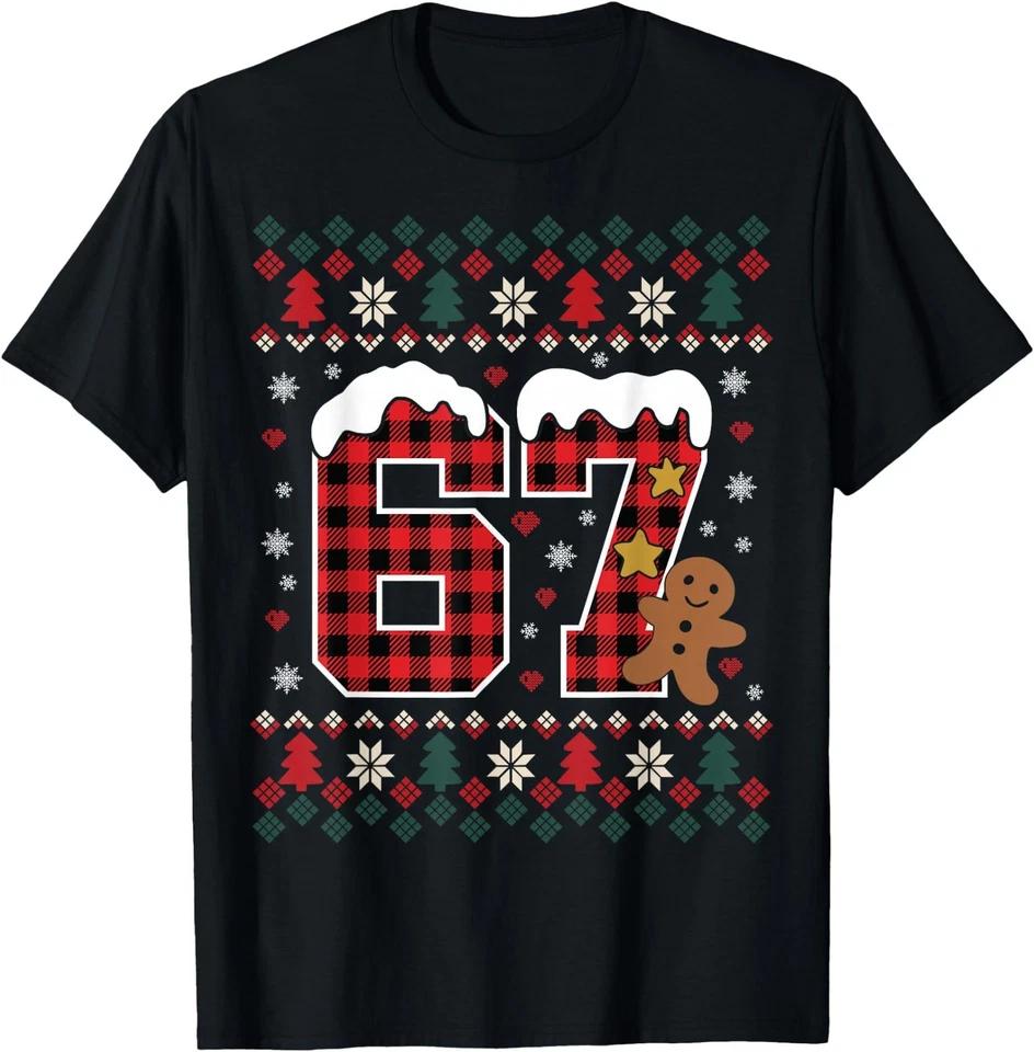 Funny 67 Christmas Pajamas Shirt Six Seven Meme Brainrot T-Shirt