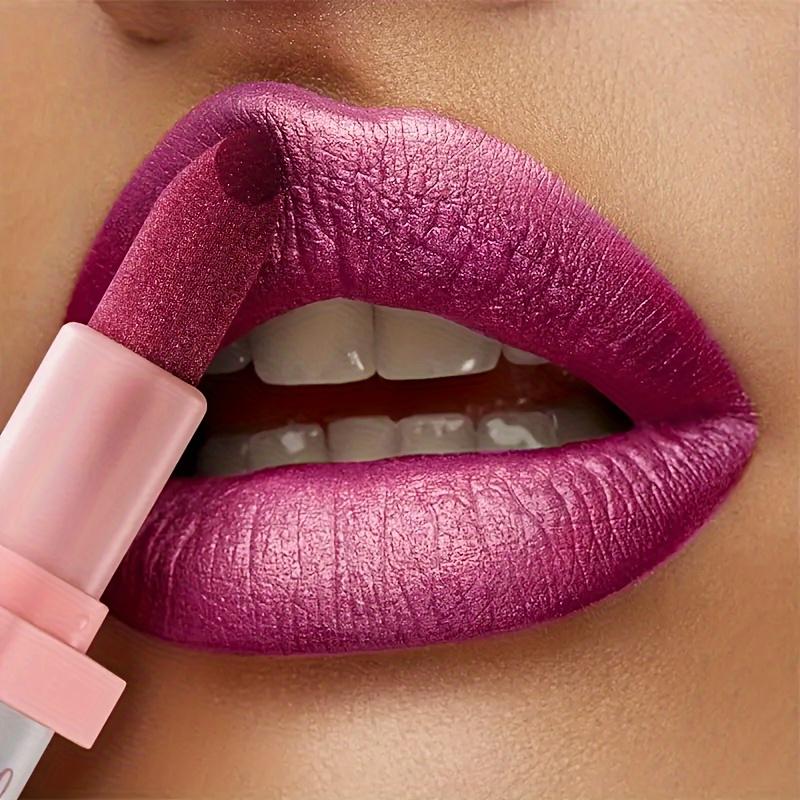 Lila Roter Lippenstift Glitzer Metallischer Lippenstift Hohe Pigmentierung Perlmutt Diamant Matt Lippenstift Nicht an Tasse haftend Langanhaltender Lippenlack Lipgloss