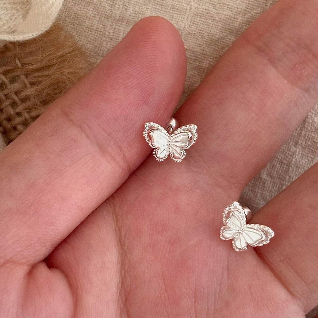 Koreanischer Stil 3D-Schmetterlings-Steckohrringe für Mädchen - Süßes Mori-Knorpel-Accessoire mit Schraubverschluss