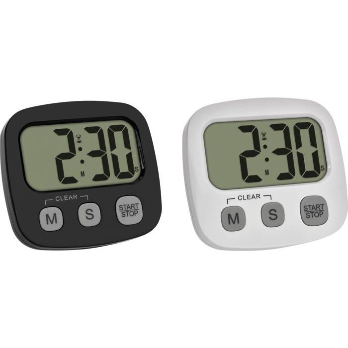 Minuterie numérique - TFA DOSTMANN - Digitaler Timer - Chronomètre - Affichage de l'heure - Set 2 (noir/blanc)