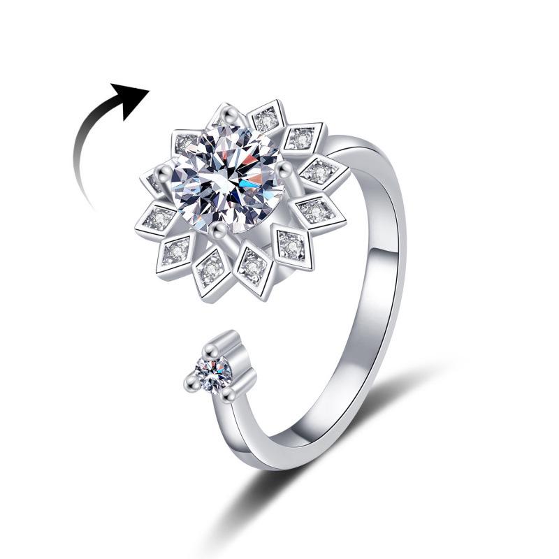 Women's Sunflower Rhinestone Adjustable Rotating Ring