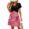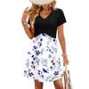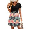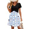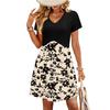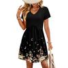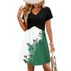 Modisches Damenkleid mit Print, V-Ausschnitt, kurzärmelig, locker, lässig, für den Strandurlaub