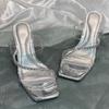 Neue Sommer Sexy Mode Zehenfrei Damen Sandalen Wasser Diamant Glänzend Quadratisch Kopf Bankett Damen High Heels Design