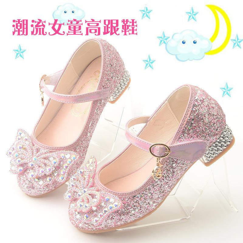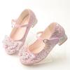 Spring and Autumn New Girls' High Heel Leather Shoes with Sequin Upper and Bowknot, Frozen-themed Shoes, Children's Princess Leather Shoes