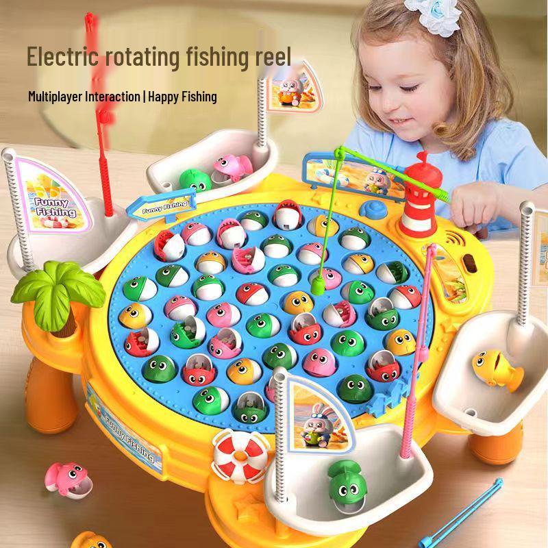 Children's Interactive Magnetic Fishing Toy with Lights & Music - Large Rotating Table for Early Education and Parent-Child Play