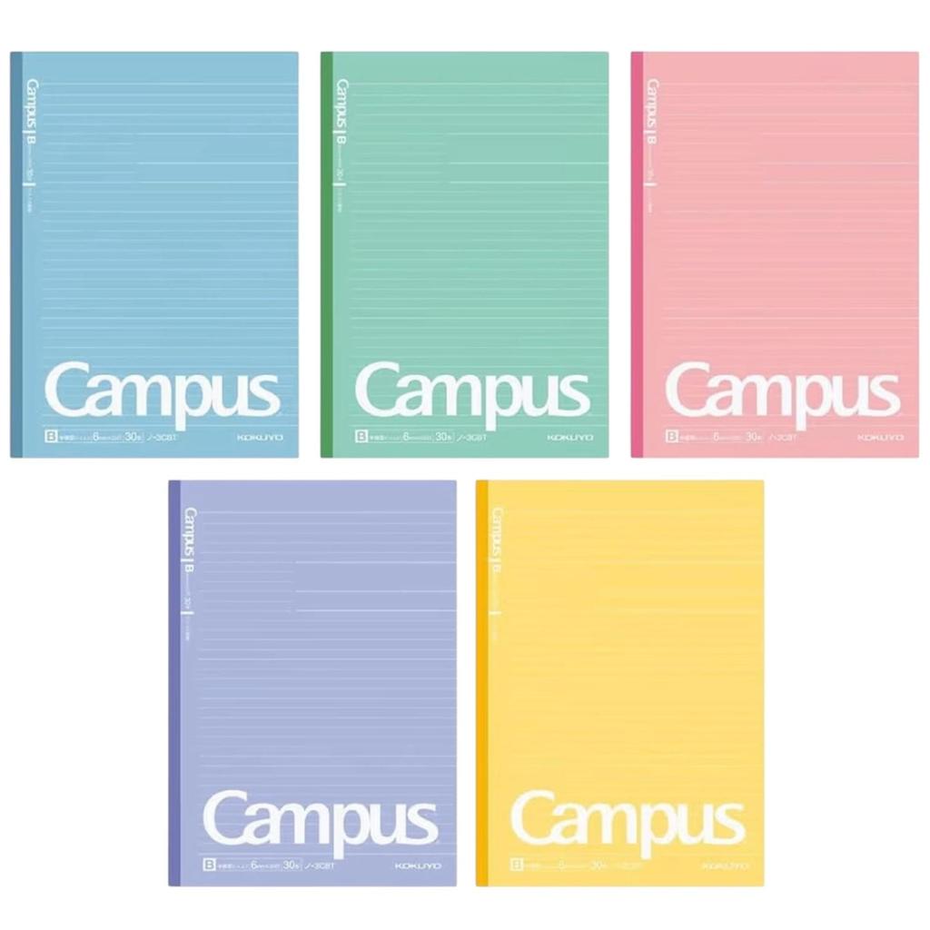 KOKUYO Campus Notebook B5 5-Color Pack: Dotted Line for Easy Writing, High-Quality Japanese Paper, 30 Sheets, Set of 5, 6mm B-Rule