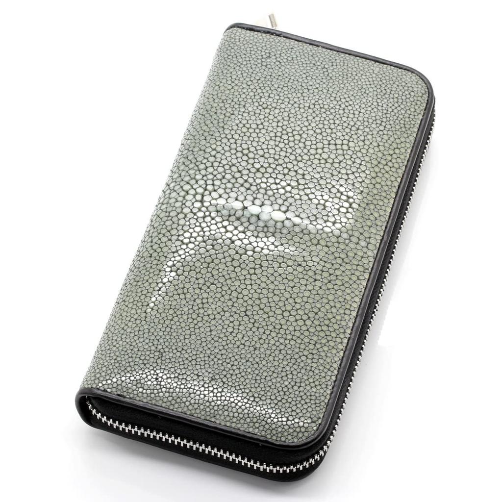 [Revetta] Langbörse aus Rochenleder, Rundreißverschluss, Rochen Galuchat, Grau, Echtes Leder, Schwarzes Lederinnenfutter [194stw]