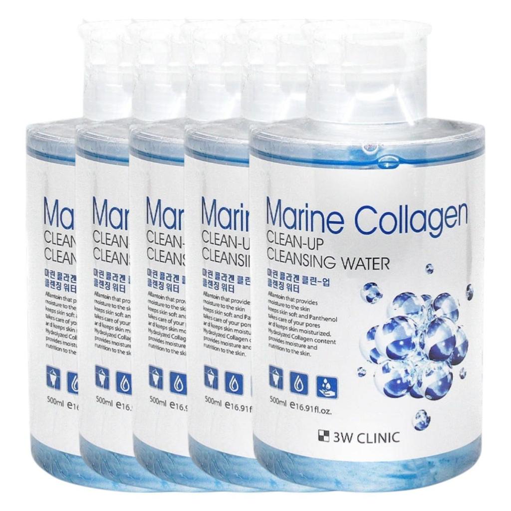 The 3W CLINIC Marine Collagen Clean-Up Cleansing Water is a premium one-step cleanser that effectively dissolves makeup while infusing the skin with essential nutrients. Formulated with Marine Collagen and Sea Water, it helps maintain skin elasticity and provides deep hydration, ensuring a plump and firm complexion after every wash. This 5-piece bulk set is ideal for those who want a refreshing, non-sticky cleansing experience that supports anti-aging and skin vitality.