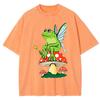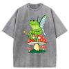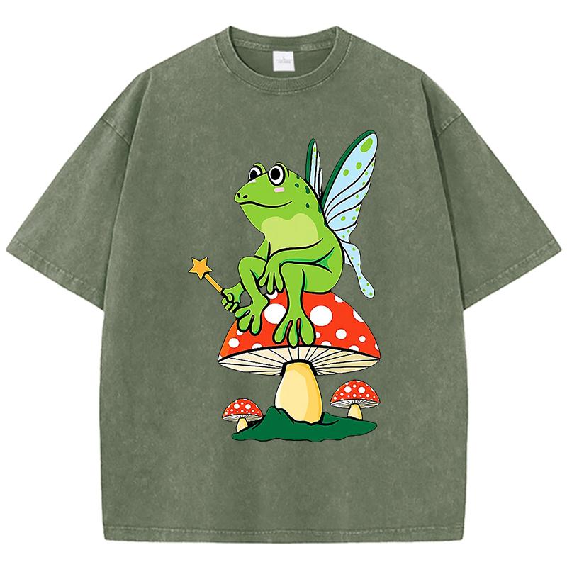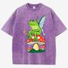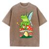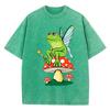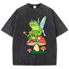 Frosch FeeCore Pilz Druck Damen Gewaschenes T-Shirt Baumwolle Lässig T-Shirt Locker Hip Hop Kurzarm Vintage Kleidung