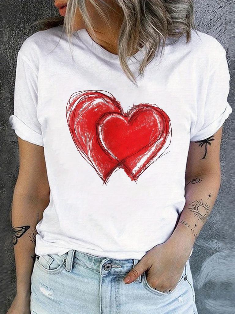 Womens Summer Casual and Fashionable Clothing Hearts Creative Fashion Design Printed Round Neck Tshirt for Aesthetic Clothes