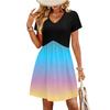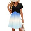 Modisches Damenkleid mit Print, V-Ausschnitt, kurzärmelig, locker, lässig, für den Strandurlaub