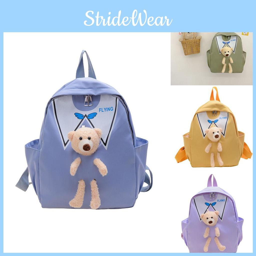Trendy Cartoon Bear Nylon Backpack For Kids Breathable And Lightweight School Bag