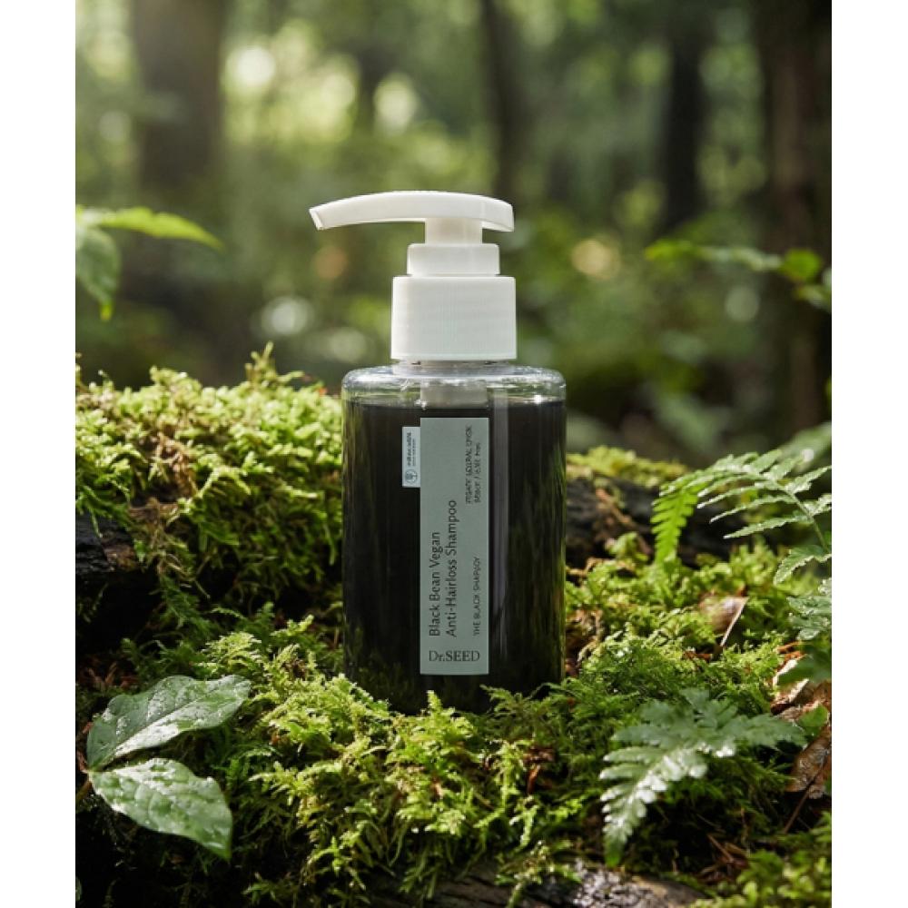 DR.SEED Schwarze Bohne Veganer Haarausfall Shampoo Reise Größe 100ml ist ein funktionelles Shampoo zur Linderung von Haarausfall-Symptomen, das mit einem milden pH-Wert entwickelt wurde (pH 4.5-6.5). Dieses Produkt ist mit pflanzlichen Inhaltsstoffen formuliert, die von Yves Vegan in Frankreich zertifiziert sind, und wird ohne Tierversuche hergestellt.. Wichtige Inhaltsstoffe sind Torfwasser, bekannt für seine reinigenden und kopfhautpeelenden Eigenschaften, und schwarzer Bohnenextrakt, der Haar und Kopfhaut nährt.. Darüber hinaus enthält es den patentierten pflanzlichen Bestandteil Moplex und schwarze Komplex-Inhaltsstoffe, die Haarausfall vorbeugen und die Gesundheit der Kopfhaut fördern.. Es verwendet hypoallergene Duftstoffe und bietet einen zarten fruchtig-blumigen Moschusduft.