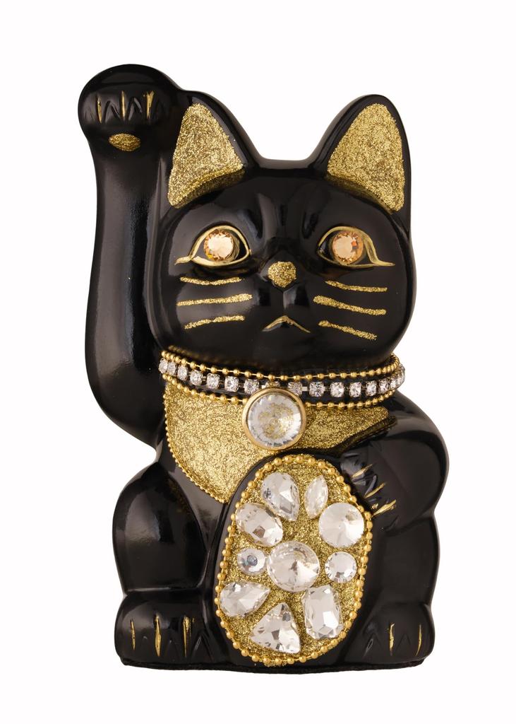 Glückskatze Schmuck Katze Rechte Pfote erhoben Keramik Glückskatze Maneki Neko Glücksbringer Feng Shui Ornament (M-GRÖSSE Schwarz) / _ (jw_M Schwarz)