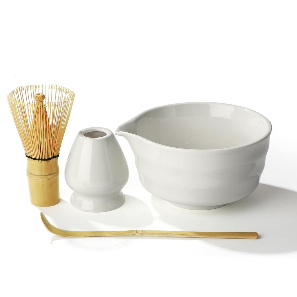 Tea ceremony set including a spouted matcha a tea whisk a tea whisk and a tea bowl, (100 prisms), stand, scoop.